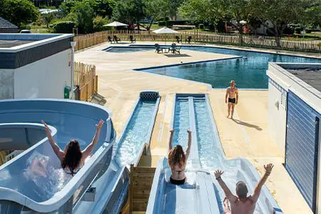 Le camping dispose d’un espace aquatique avec piscine chauffée, toboggans et pataugeoire, parfait pour toute la famille.